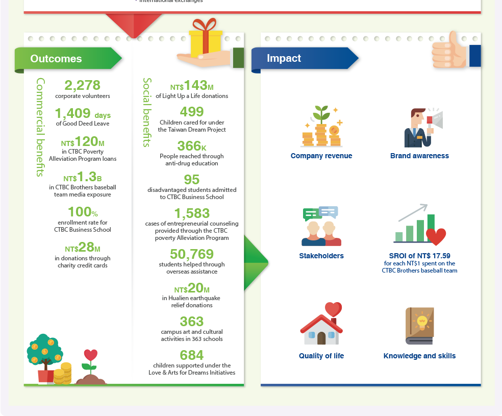 For the 33rd year of Light Up a Life in 2018, a total of NT$143 million was raised during the three-month campaign. It went to the 312 rural elementary schools under the Child Welfare League Foundation's Rural Elementary School Student Care and Counseling Project, the 26 community development associations of the Taiwan Dream Project, and the 36 tours of remote areas undertaken by the Paper Windmill Educational Foundation, helping improve the educational and family life of nearly 50,000 children. CTBC Holding has also launched a comprehensive assistance program for disadvantaged children, and the charity foundation received recognition at the 2018 National Excellent Corporate Volunteer Team Awards presented by the Ministry of Health and Welfare. We undertake these efforts not only to brighten up these children's days but because we believe in alleviating poverty through education.