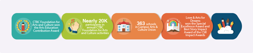 CTBC Holding has long dedicated a great deal of effort to supporting the arts, particularly in making diverse, world-class art exhibitions easily accessible to the public. These efforts have been recognized recently with our 12th win at the Art & Business Awards, and by winning the 2018 Arts Education Contribution Award from the Ministry of Education and the 2017 Social Education Contribution Award from the Ministry of Education. These honors have come on the back of the long-term efforts of the CTBC Foundation for Arts and Culture, including its Love & Arts for Dreams Initiatives, which won both the Special Excellence Award and Best Story Impact Award of the 2018 CSR Impact Awards for promoting arts and culture education in remote areas.